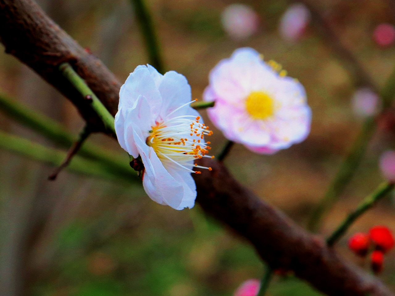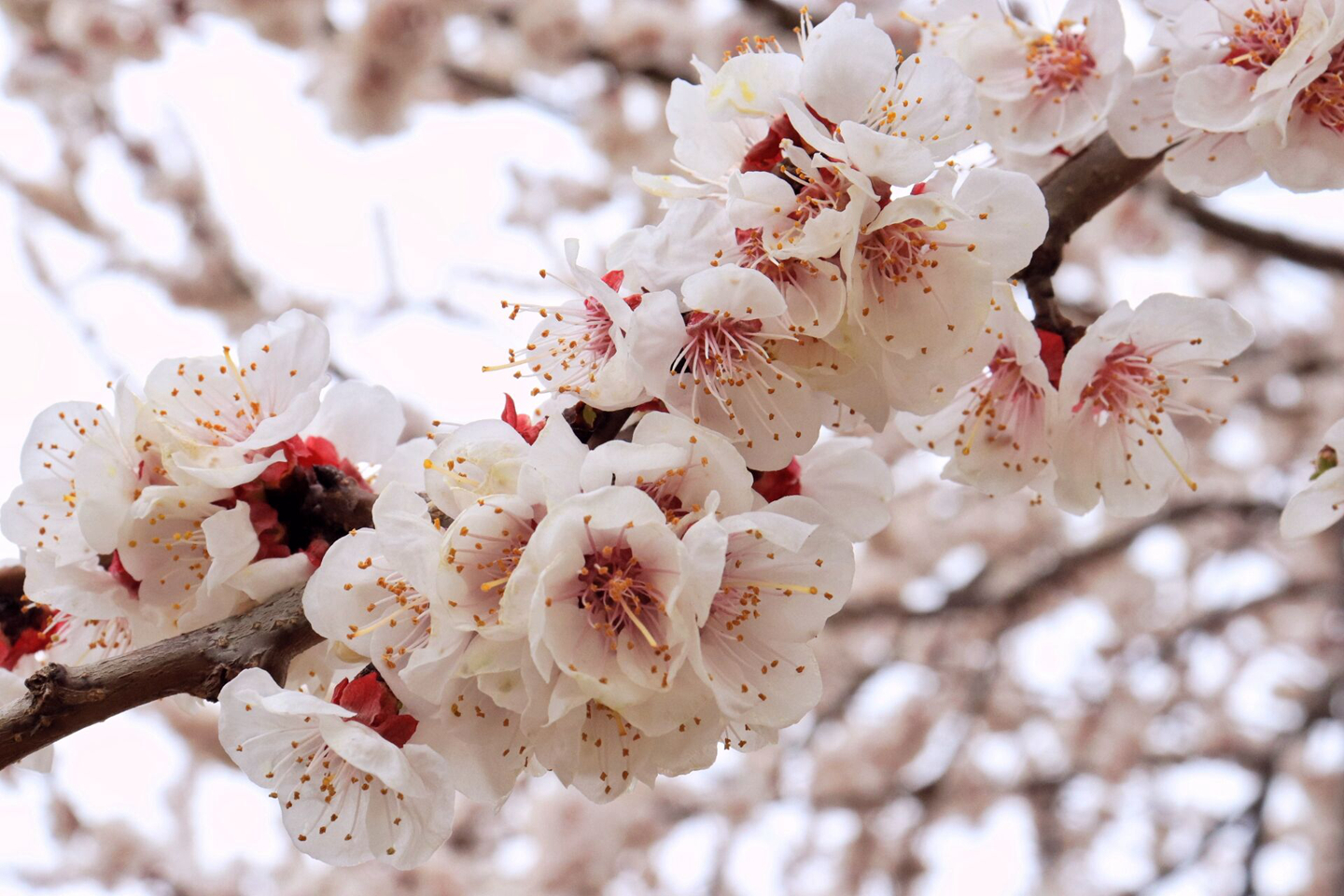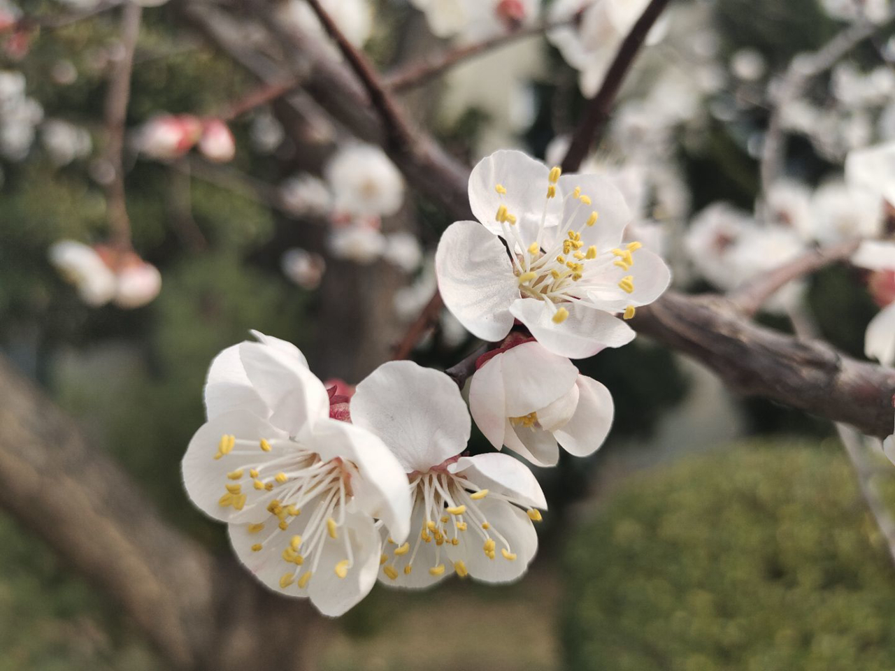 款款的阳春三月风,吹来了杏花满枝头,花团锦簇;吹散了小草枯荣衣,青翠欲滴。看这满树的花儿与嫩绿的小草相互映照,和谐而又美好,尽显春天的勃勃生机。