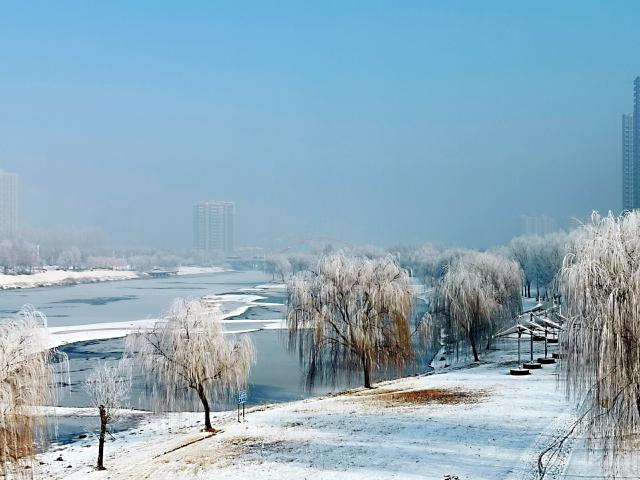 “冬宜密雪,有碎玉声。” 新雪初霁,霜雪落满地,意上雪中枝。楼台、亭阁、松树、雪花浑然一体,银装素裹,皓然一色。