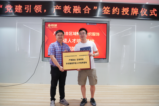随后,澳门网投官方网站产品艺术设计专业党支部分别与天派针织股份有限公司党支部、浙江聚衣堂服饰有限公司党支部签署党建联建协议书并相互授牌。双方负责人共同为“产教融合区域特色无缝针织学徒人才培养基地”揭牌,并为2022年度区域特色学徒先进工作者颁发证书。