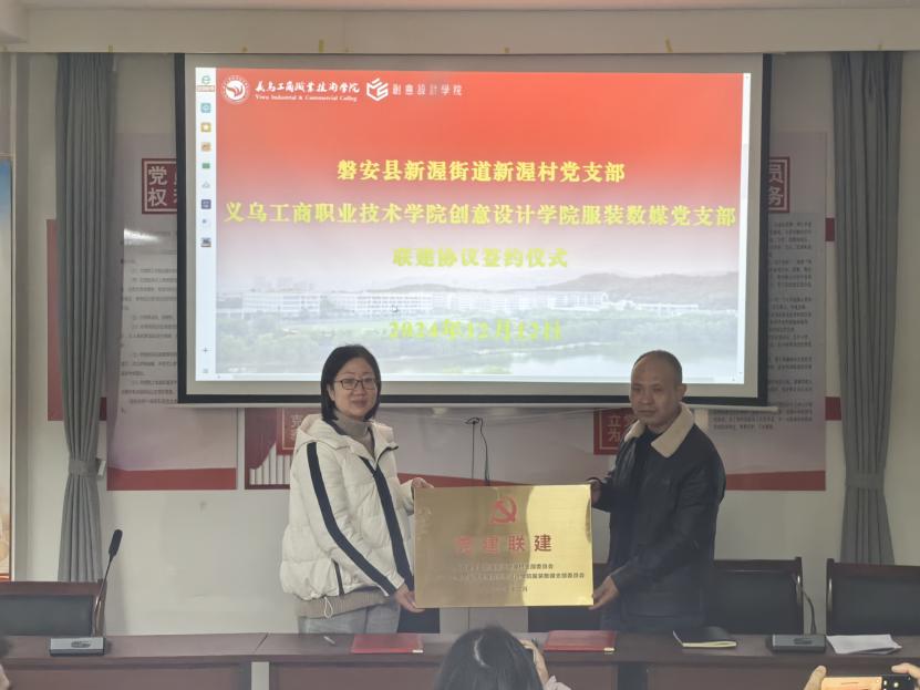 会上,双方党组织相关负责人进行党建联建签约仪式,并围绕村社发展、帮扶需求、共谋发展等方面交流发言,就如何深化两地全方位、多领域、深层次合作开展交流探讨。新渥村拥有丰富的自然和文化资源,但在文化挖掘、品牌塑造、旅游开发等方面仍有巨大的提升空间。服装数媒支部可充分发挥专业特长,开展文化创意设计项目,为新渥村的全面振兴注入新的活力和动力,实现乡村产业、人才、文化、生态、组织的全面振兴。