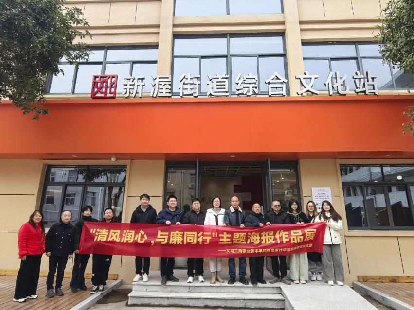 会后,服装数媒党支部在新渥街道综合文化站举办“清风润心,与廉同行”主题海报作品展,以清廉文化引领文明乡风。随后,在新渥村党支部金民军书记带领下,服装数媒党支部党员师生先后实地调研新渥街道综合文化站、“浙八味”市场和中药材养生博览馆。