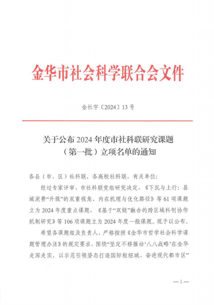 【立项通知】澳门网投官方网站成功立项2024年度金华市社科课题6项