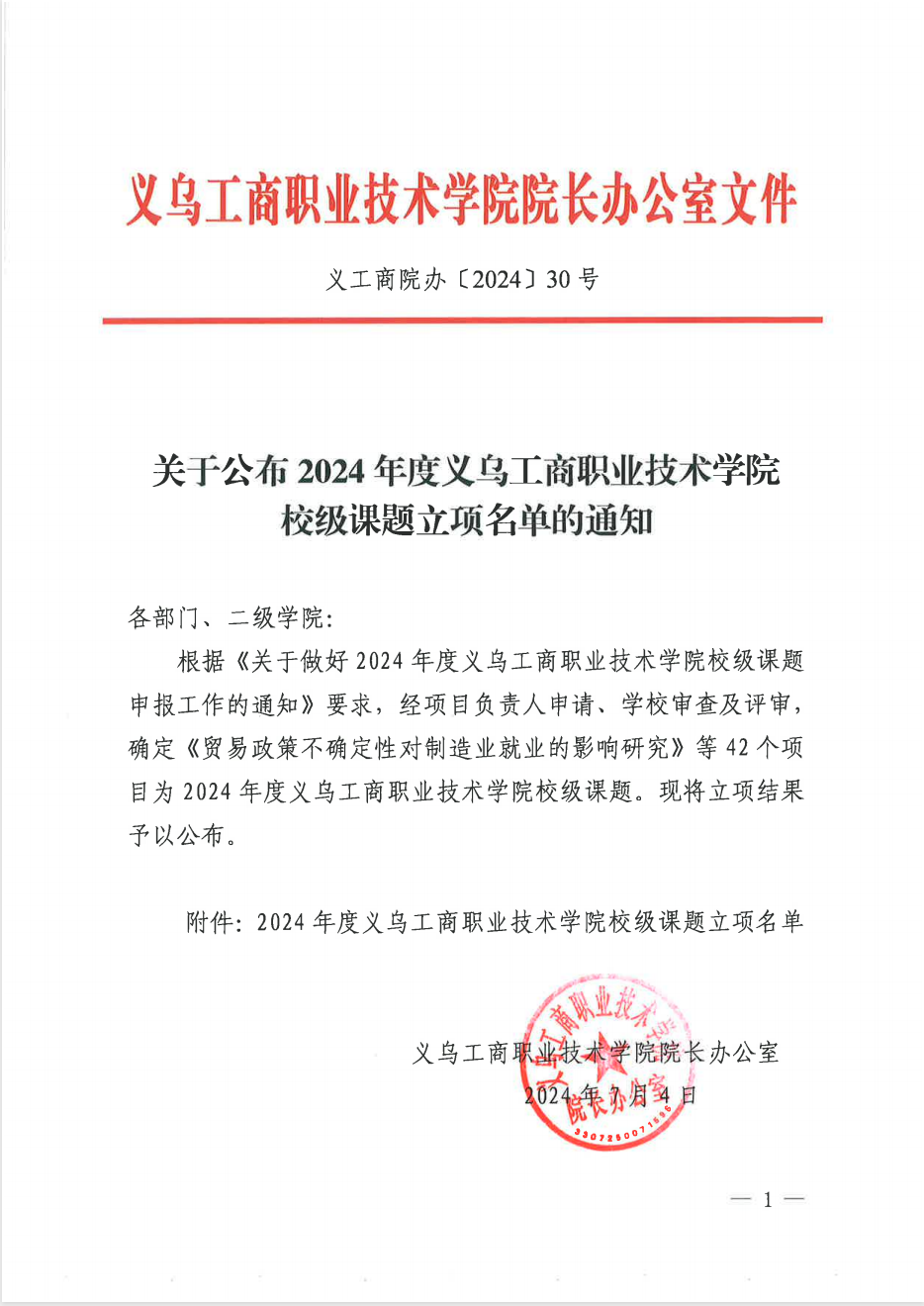 【立项通知】澳门网投官方网站成功立项2024年度义乌工商职业技术学院校级课题4项