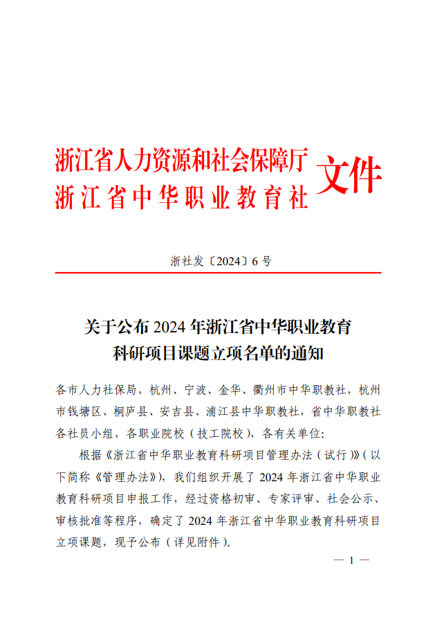 【立项通知】澳门网投官方网站成功立项2024年浙江省中华职业教育科研项目课题1项