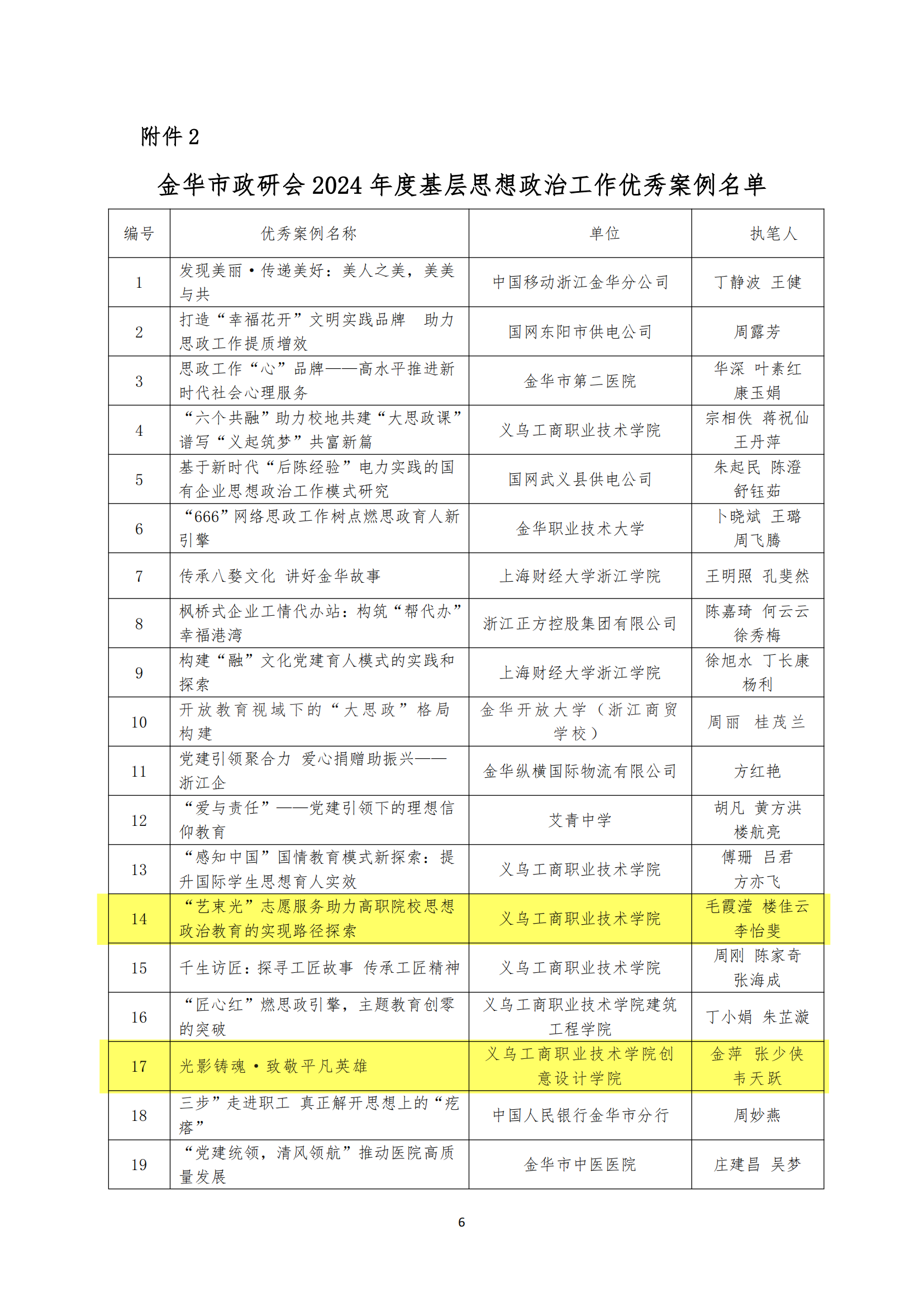【获奖通知】澳门网投两项基层思政工作案例获金华市政研会2024年度基层思想政治工作优秀案例表彰