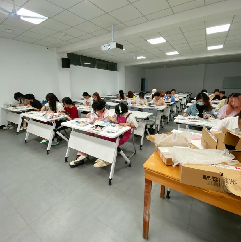 随后,学员们开始了自己的油画棒创作之旅。大家尽兴的用油画棒在纸上“行走”,充分发挥自己的想象力和创造力,用色彩表达自己的情感。活动现场,一幅幅充满创意和想象力的油画棒作品陆续诞生。有的作品色彩鲜艳、对比强烈,展现出青春的活力和激情;有的作品则色彩柔和、细腻入微,传递出温馨和宁静的氛围。每一幅作品都是学生们用心创作、倾注情感的结晶。