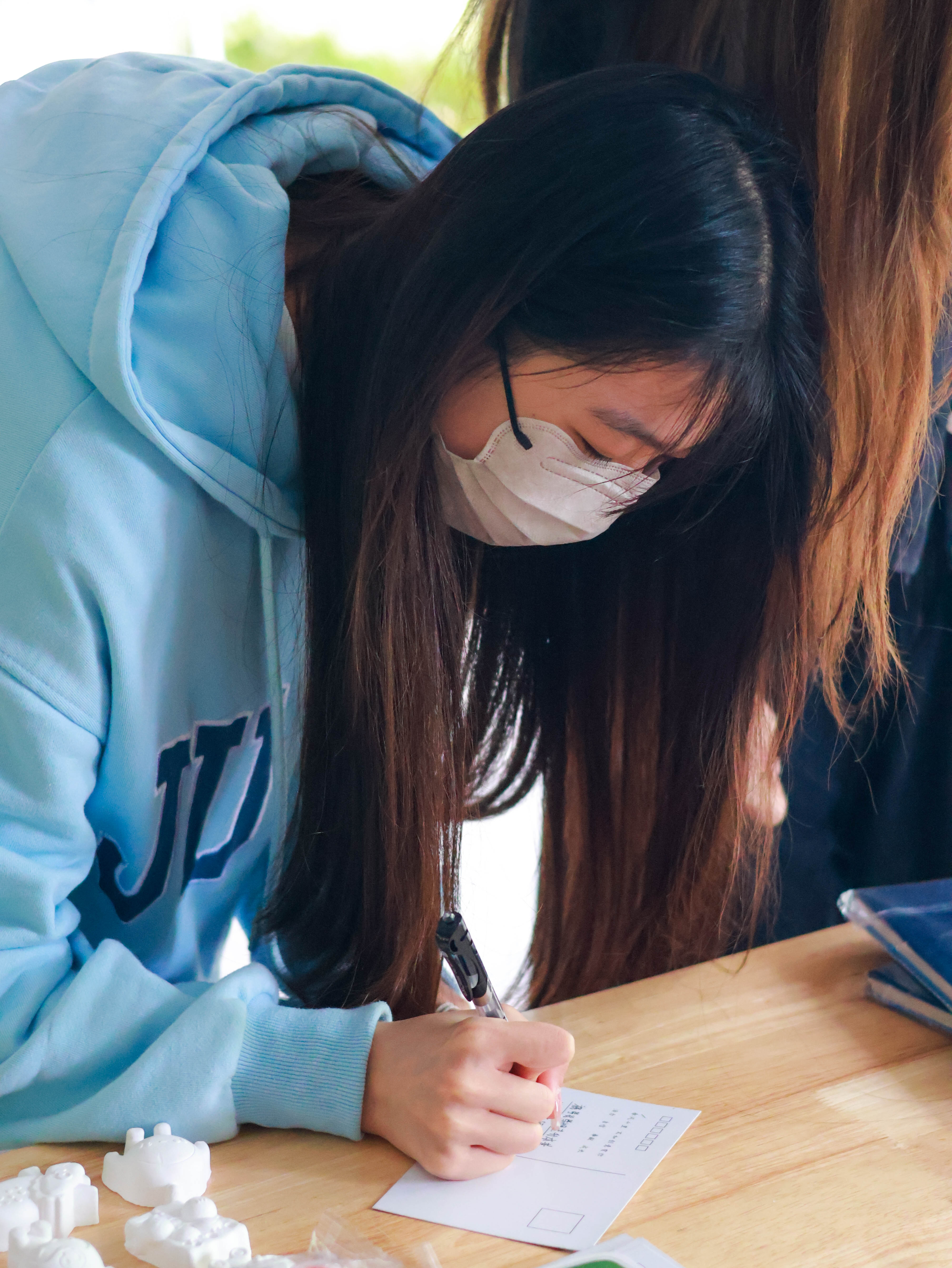 活动筹备期间,学院组织学生骨干以“一对一”形式走访备考学生,不仅为考生送上了包含文具套装、能量补给包等实用物资的“助考礼盒”,还特别准备了手绘励志明信片。其中,“笔下生花展宏图”“春风得意马蹄疾”等饱含深情的祝福语,均由低年级学生以书法、插画等形式原创完成。一名考生表示:“手写明信片的细节让人感动,石膏画上的卡通图案瞬间缓解了紧张心情。”手写温度与艺术创意的结合,让人感受到学院特色专业特有的温暖传承。