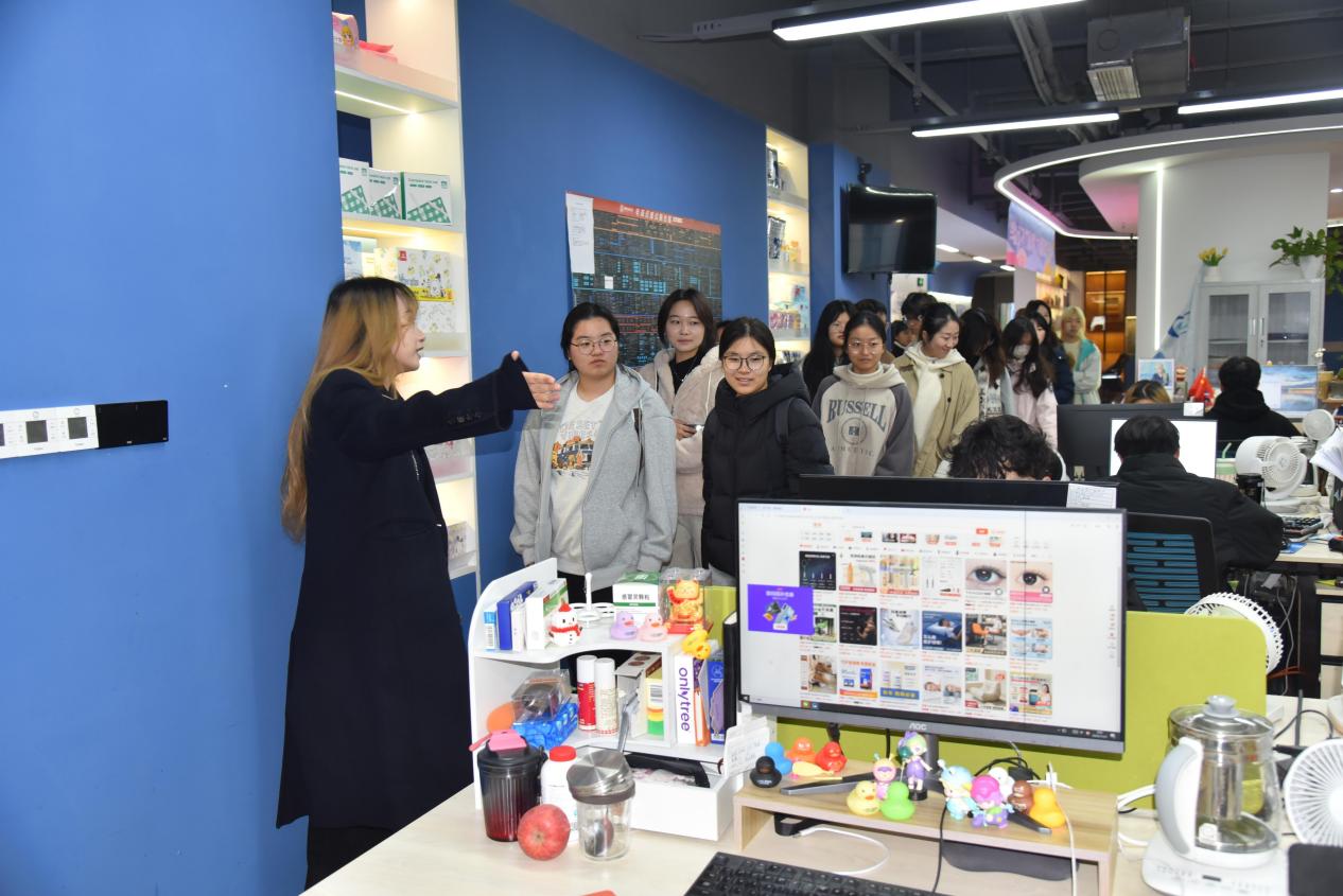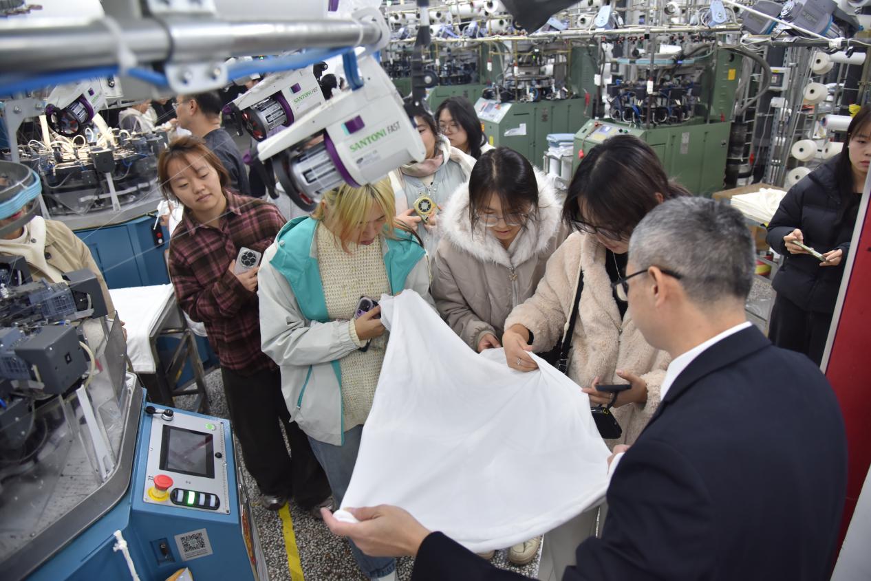 “璞寓”人才公寓负责人介绍了人才政策与配套服务,通过实地参观,增强了同学们留义发展的信心。义乌瑞泽服饰有限公司则展示了服饰从设计到跨境交付的全流程,为同学们带来国际贸易背景下的设计运营启示。