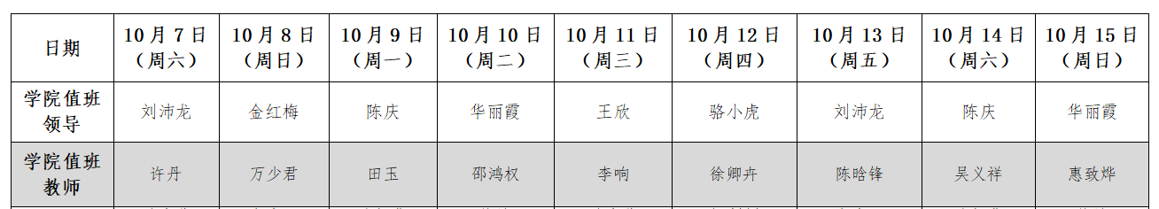 澳门网投官方网站24小时值班表(10月7日-10月15日)