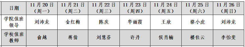 澳门网投官方网站24小时值班表(11月20日-11月26日)