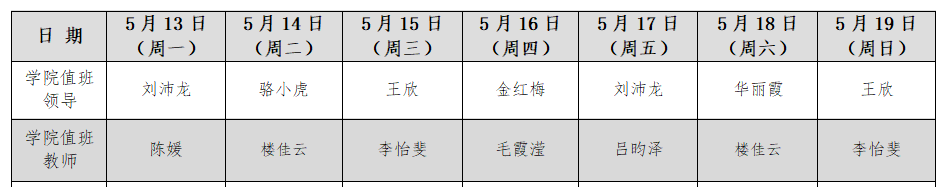 澳门网投官方网站24小时值班表(5月13日-5月19日)