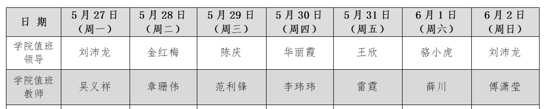 澳门网投官方网站24小时值班表(5月27日-6月2日)