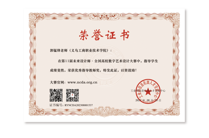 近日,2023年“第十一届未来设计师·全国高校数字艺术设计大赛(NCDA)”全国总决赛成绩正式揭晓,我校在全国总决赛中再获佳绩,共获国赛一等奖1项、二等奖1项、三等奖1项。