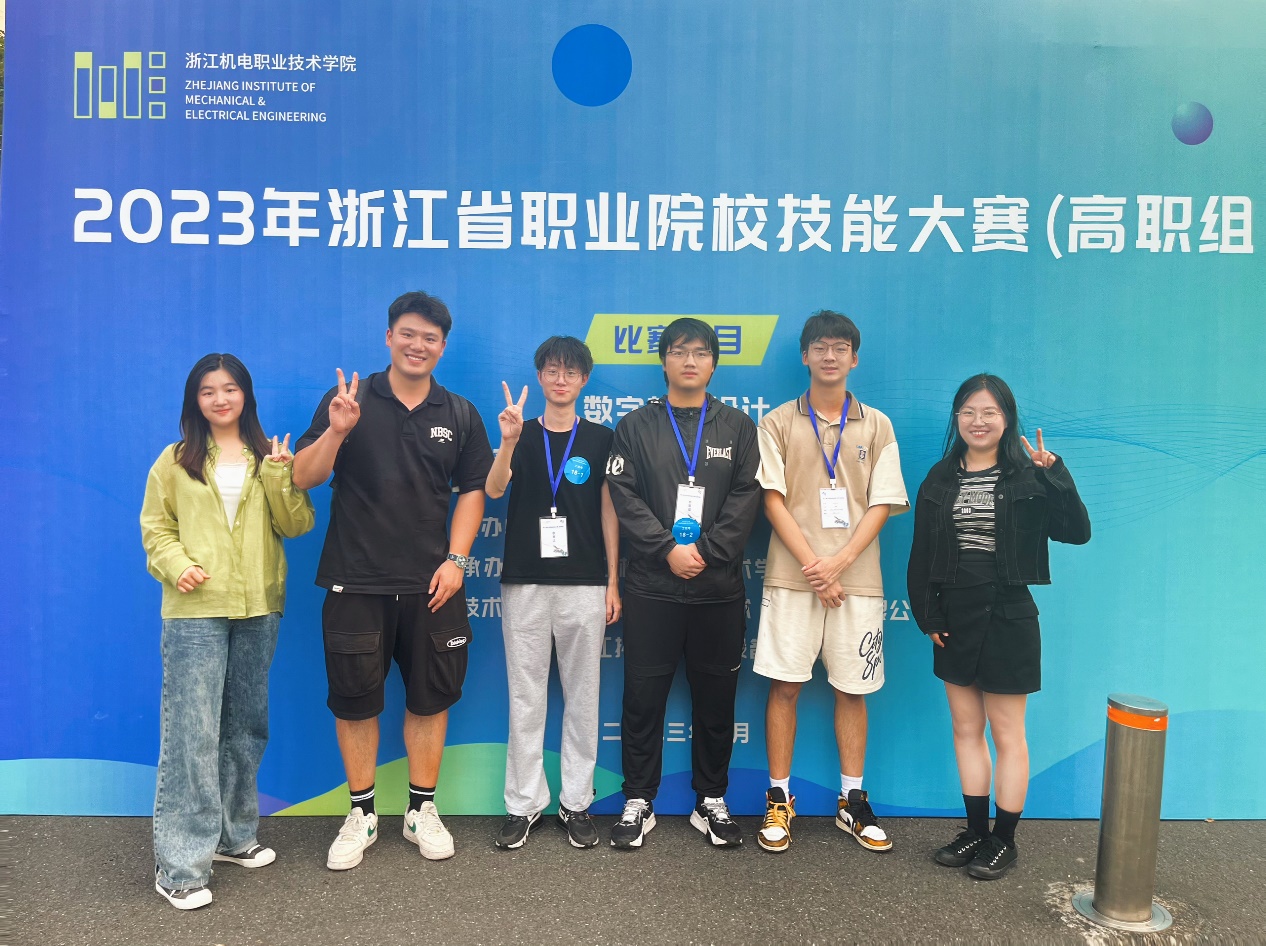 6月21日,2023年浙江省职业院校技能大赛高职组“数字艺术设计”赛项在浙江机电职业技术学院顺利举办,来自全省共25所高职高专院校的25支队伍参加此次比赛。由我校澳门网投官方网站朱清沁老师、俞越老师指导的数字媒体艺术设计专业学生彭程、陈恺一、钱晨亮三位同学,在比赛中沉着冷静应对,团队分工协作,经过8小时激烈角逐,最终荣获三等奖。