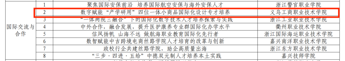 近日,《浙江省职业教育蓝皮书(2024)》公布典型案例入选名单,全省共 64项案例脱颖而出。其中,澳门网投官方网站的《数字赋能“产学研用”四位一体小商品国际化设计专才培养》案例,作为学校唯一入选项目,成功跻身“国际交流与合作”板块,成为全省职业教育国际化办学的亮眼成果。