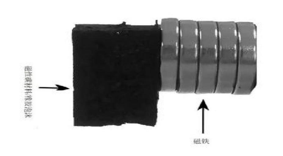 本发明公开了磁性碳材料/橡胶泡沫的制备方法,其特点 是首先将磁性金属氧化物负载在碳材料表面上,然后通过胶乳 法得到稳定的胶乳/磁性碳材料复合乳液,乳液经过破乳、凝 聚、干燥后可得到橡胶/磁性碳材料复合母料。将干燥后的橡 胶/磁性碳材料复合母料以及各种助剂按一定比例加入到橡胶 基体中,进一步通过混合、硫化,得到具有良好性能的磁性碳 材 料/ 橡胶泡