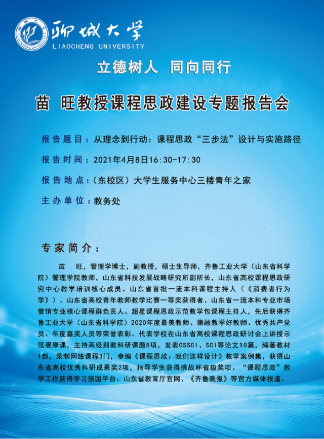 苗 旺教授课程思政建设专题报告会