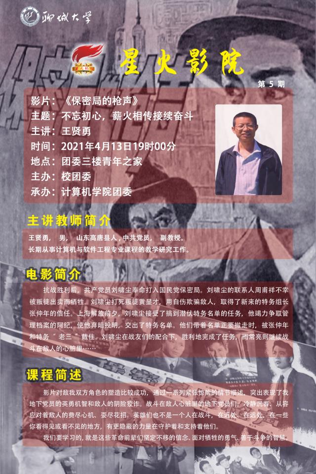 星火影院第5期:不忘初心,薪火相传接续奋斗——观影《保密局的枪声》