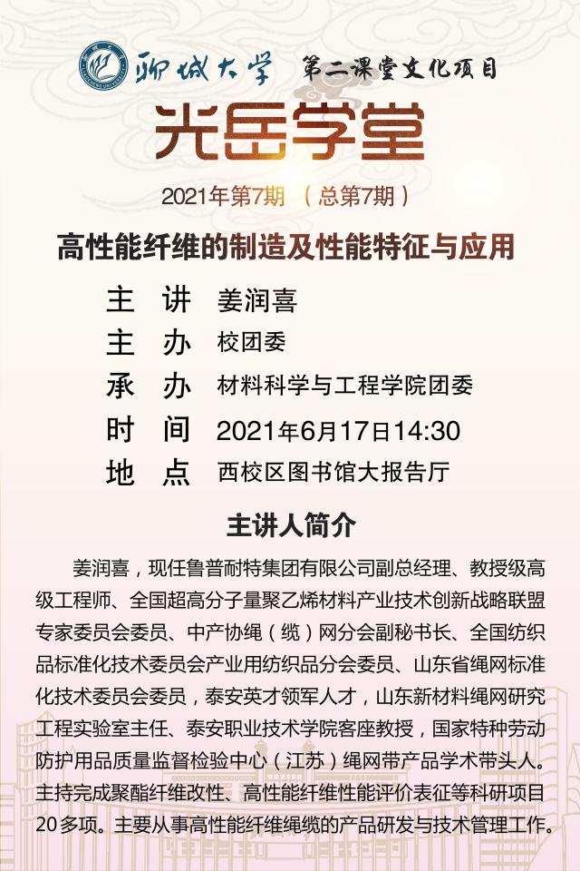 光岳学堂2021年第7期:高性能纤维的制造及性能特征与应用