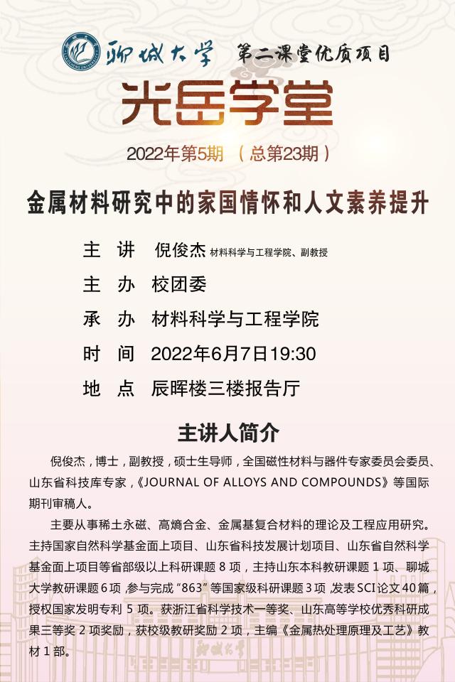 光岳学堂第23期——金属材料研究中的家国情怀和人文素养提升