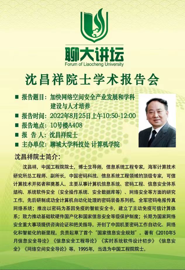 聊大讲坛——沈昌祥院士学术报告会