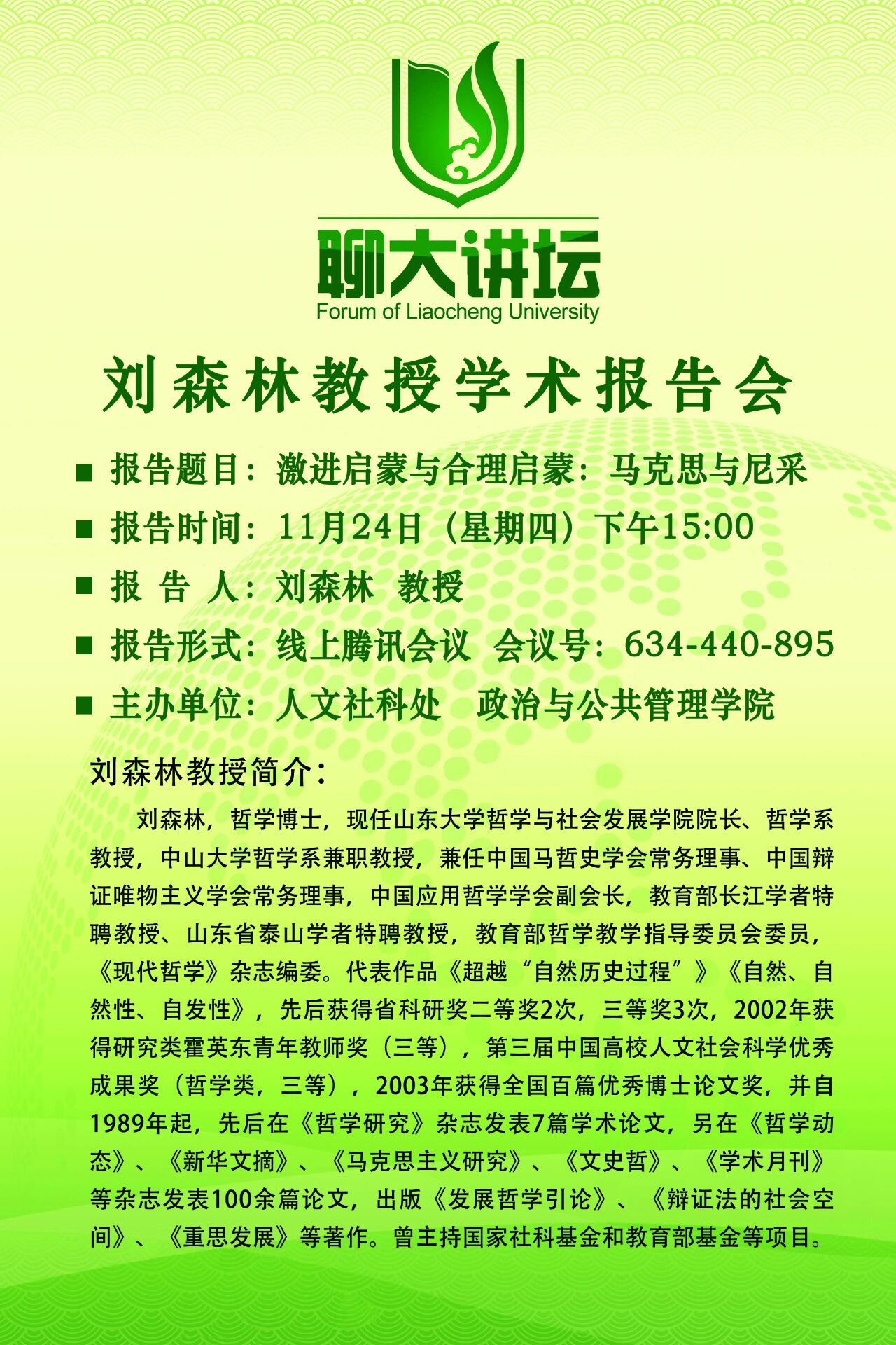 聊大讲坛——刘森林教授学术报告会
