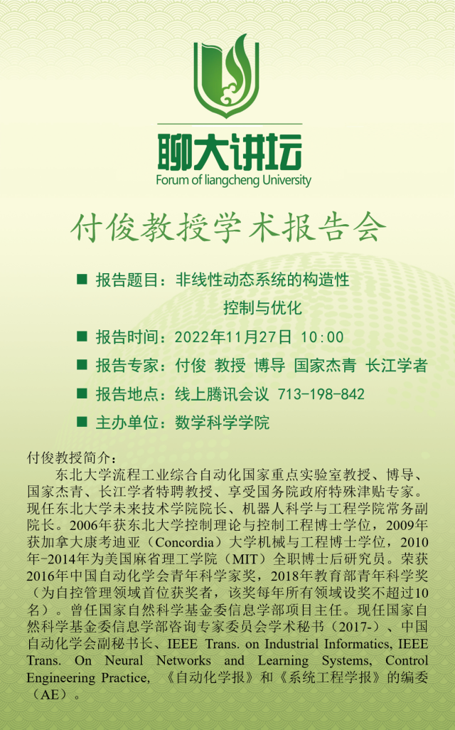 聊大讲坛——付俊教授学术报告会