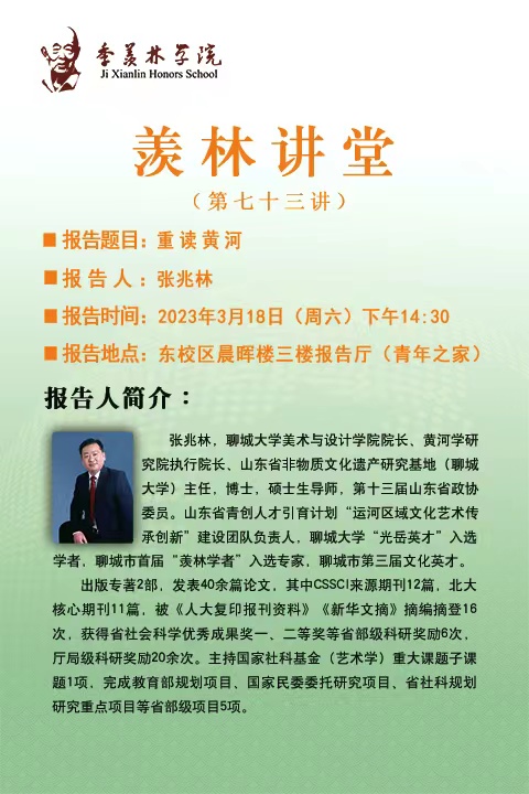 季羡林学院“羡林讲堂”报告题目:重读黄河