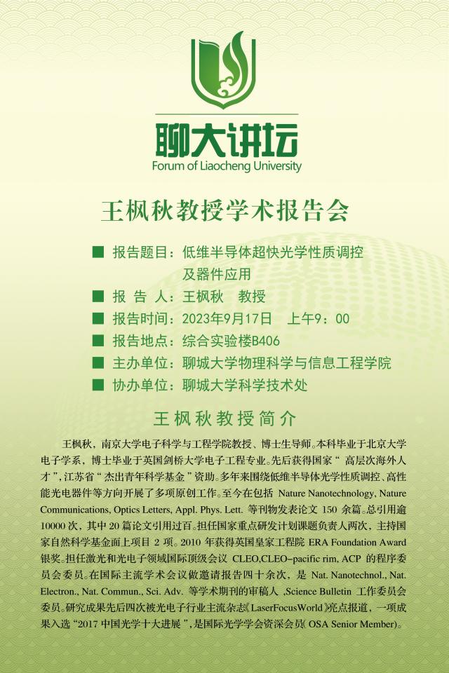 聊大讲坛——王枫秋教授学术报告会