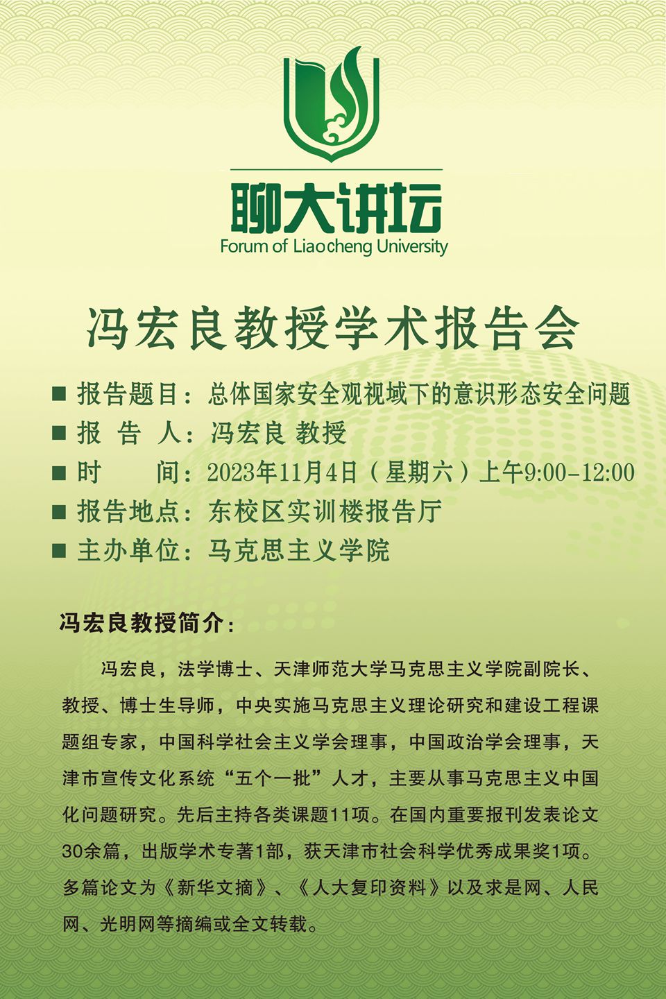 聊大讲坛——冯宏良教授学术报告会