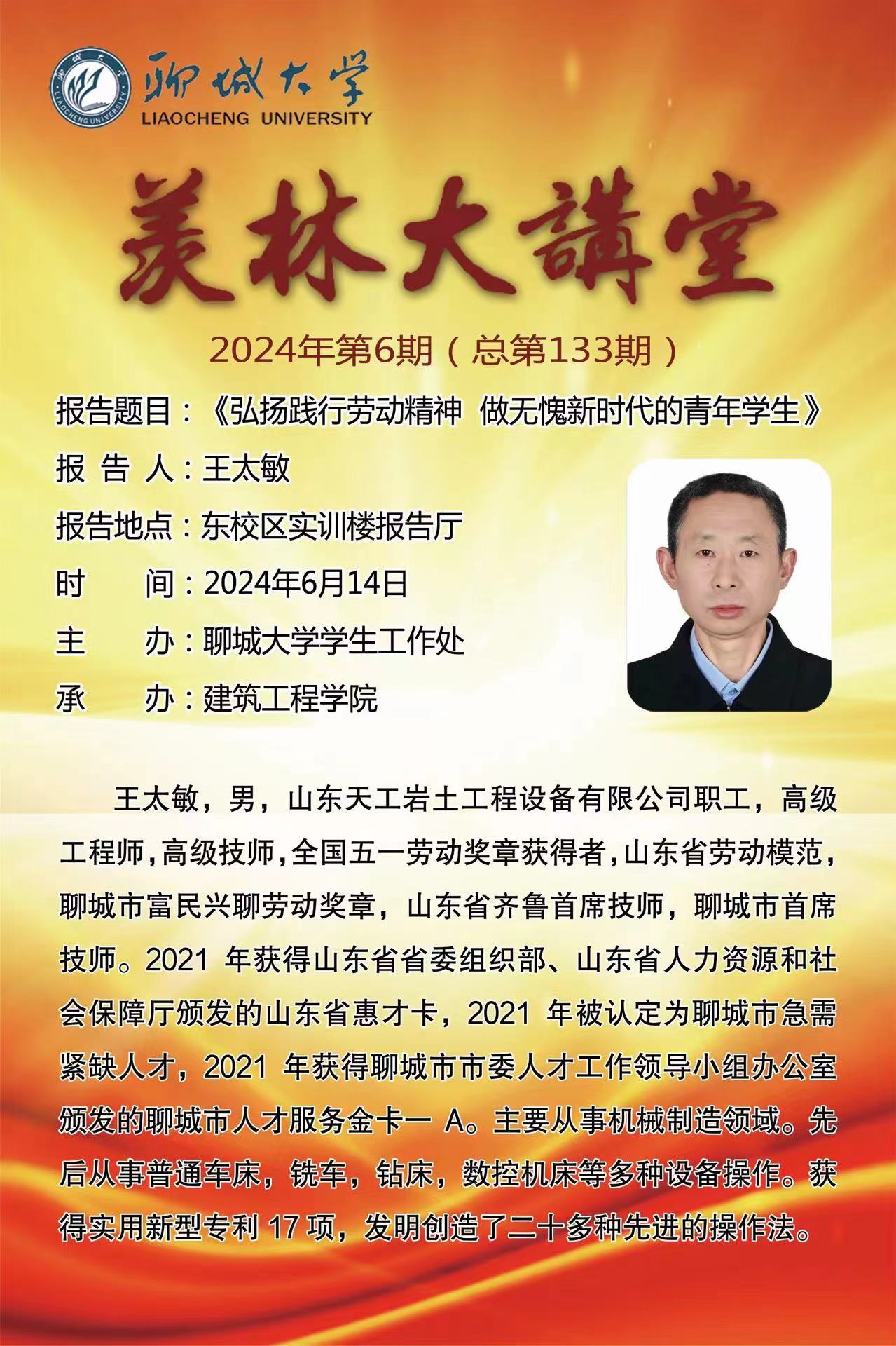 羡林讲堂——弘扬践行劳动精神 做无愧新时代的青年学生