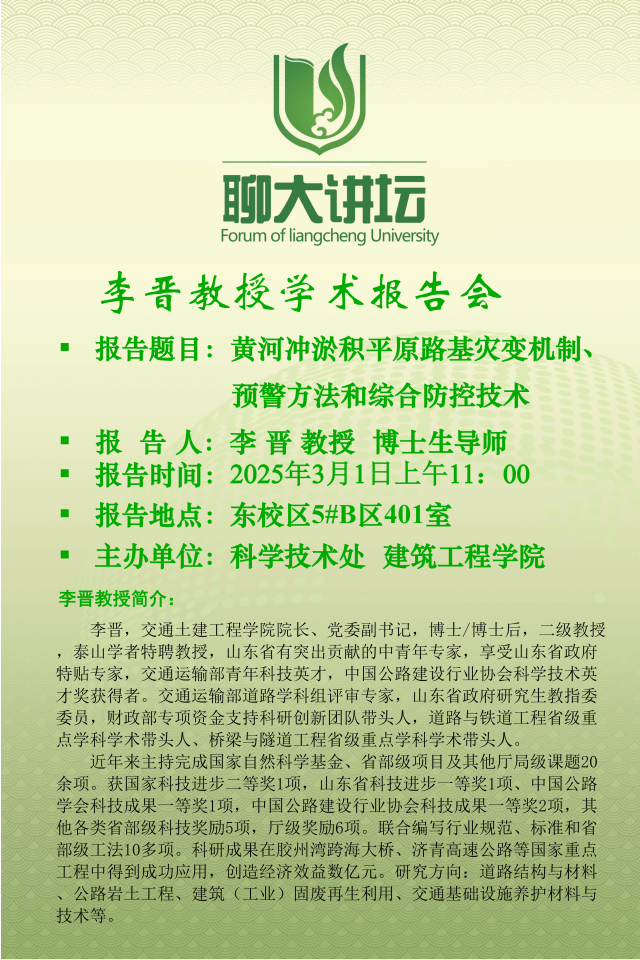 聊大讲坛——李晋教授学术报告会