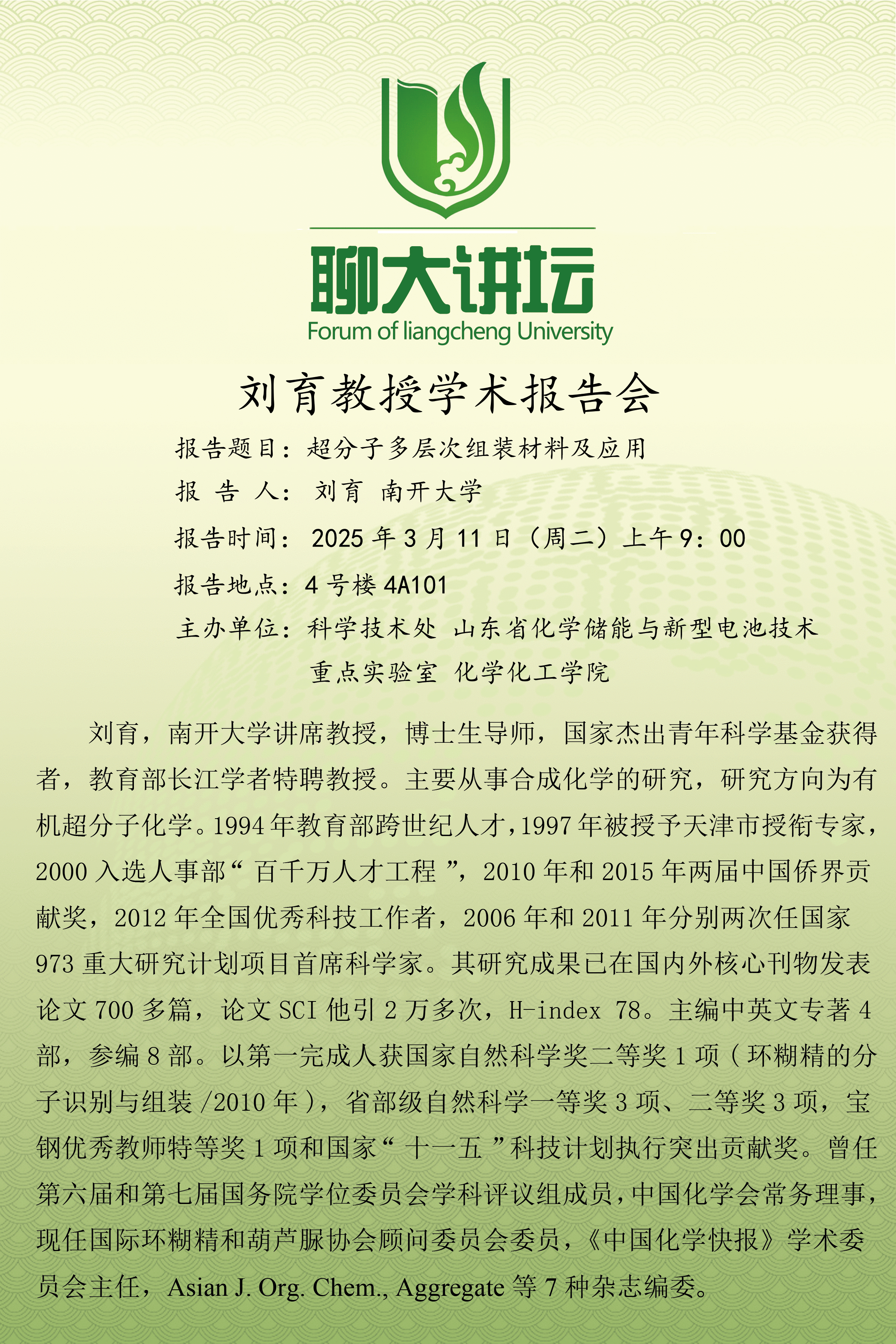 聊大讲坛——刘育教授学术报告会