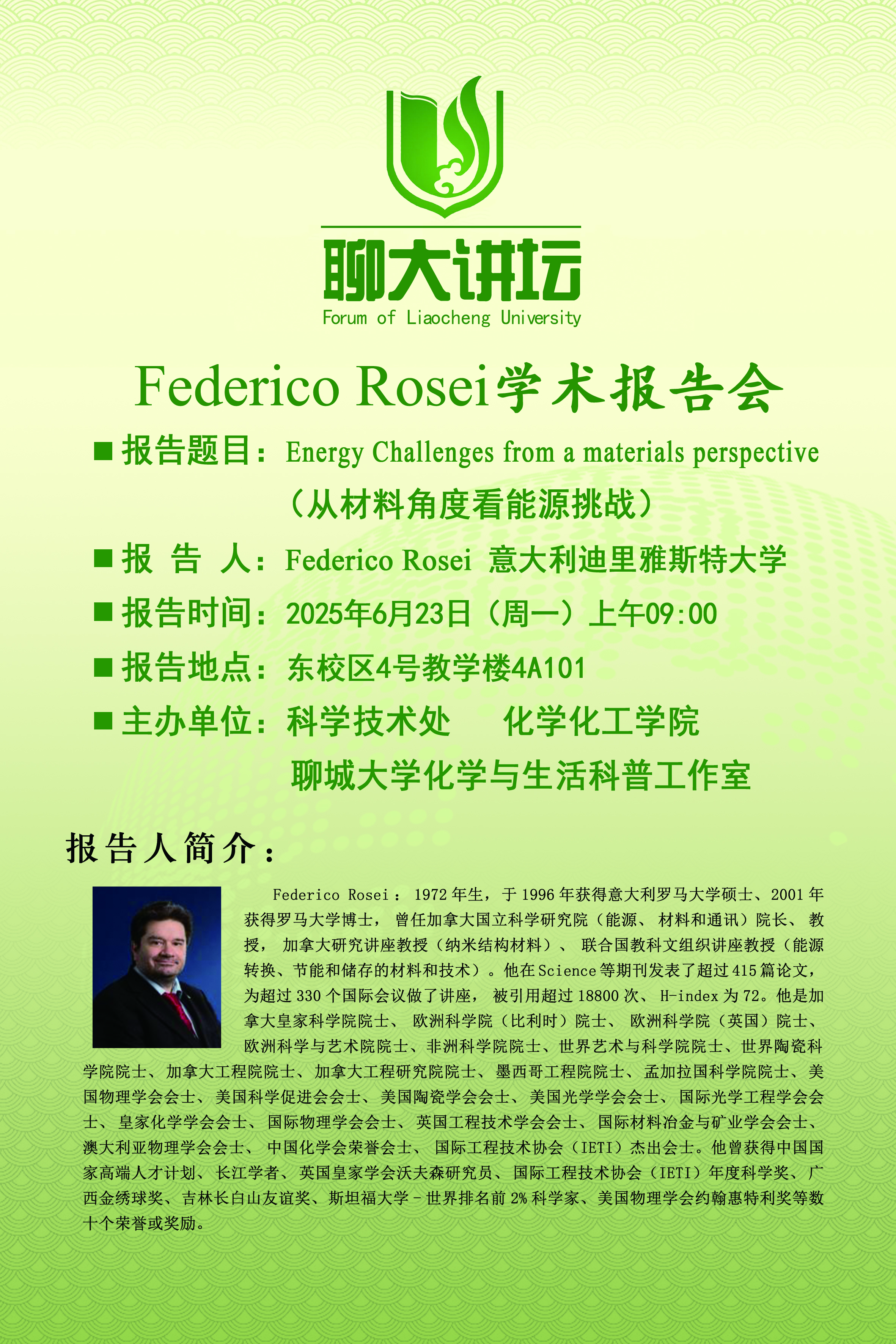 聊大讲坛——Federico Rosei教授学术报告会