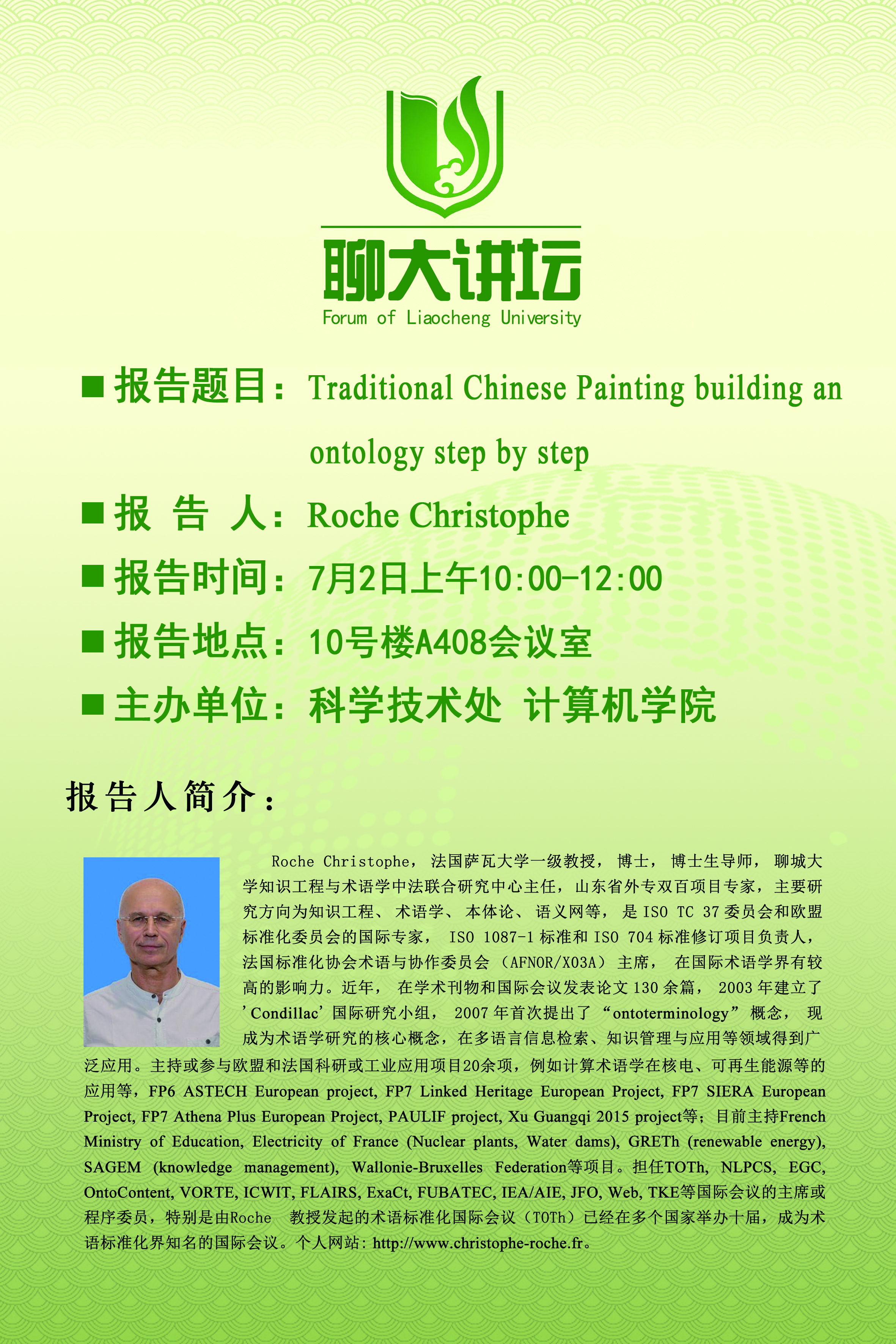 聊大讲坛——Roche Christophe教授学术报告会