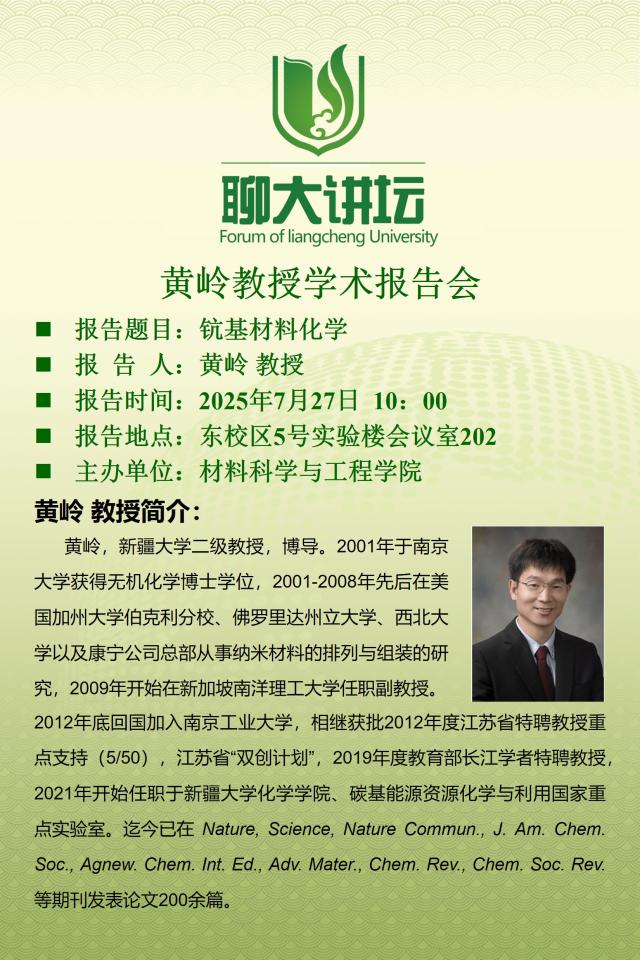 聊大讲坛——黄岭教授学术报告会