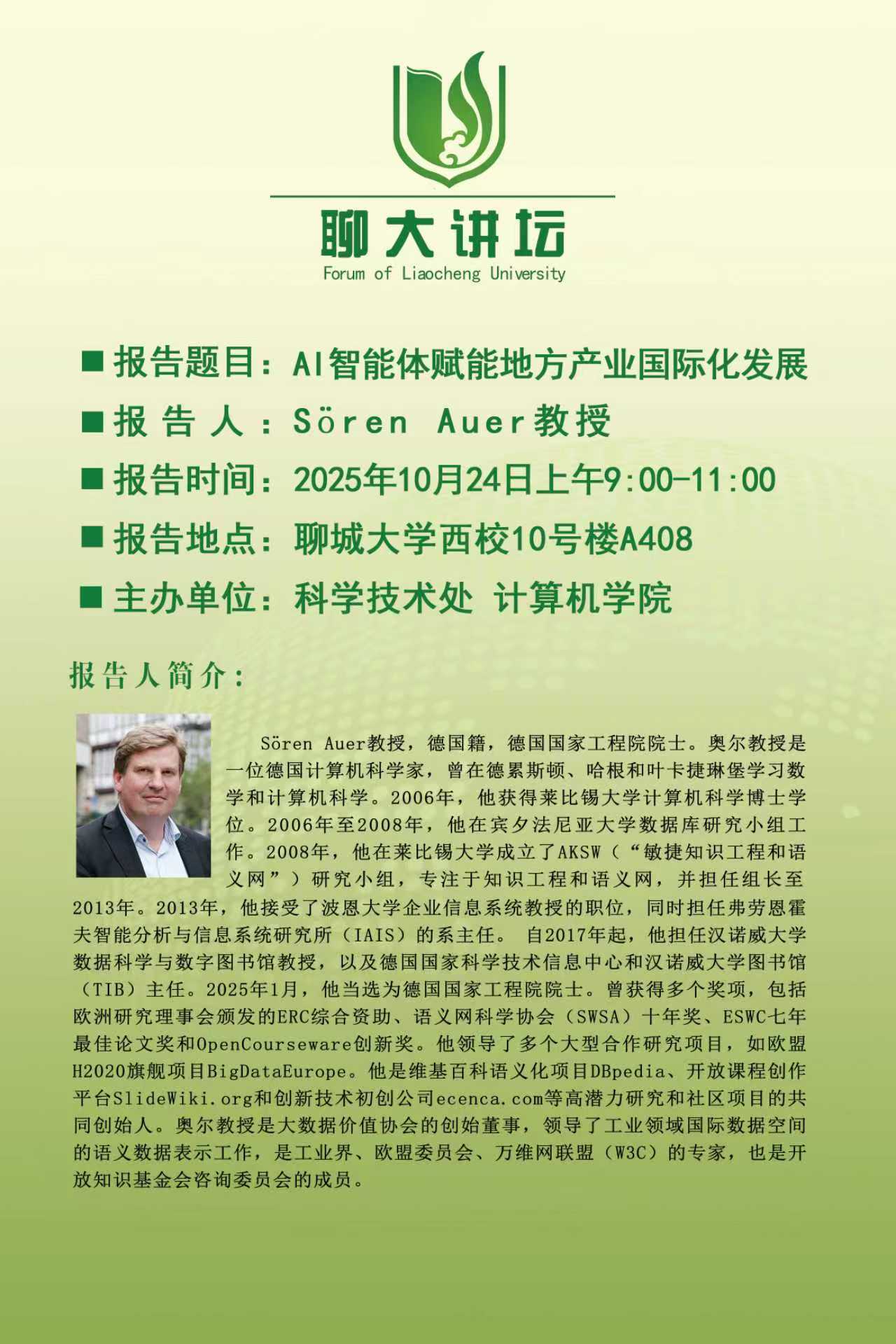 聊大讲坛——Sören Auer教授学术报告会