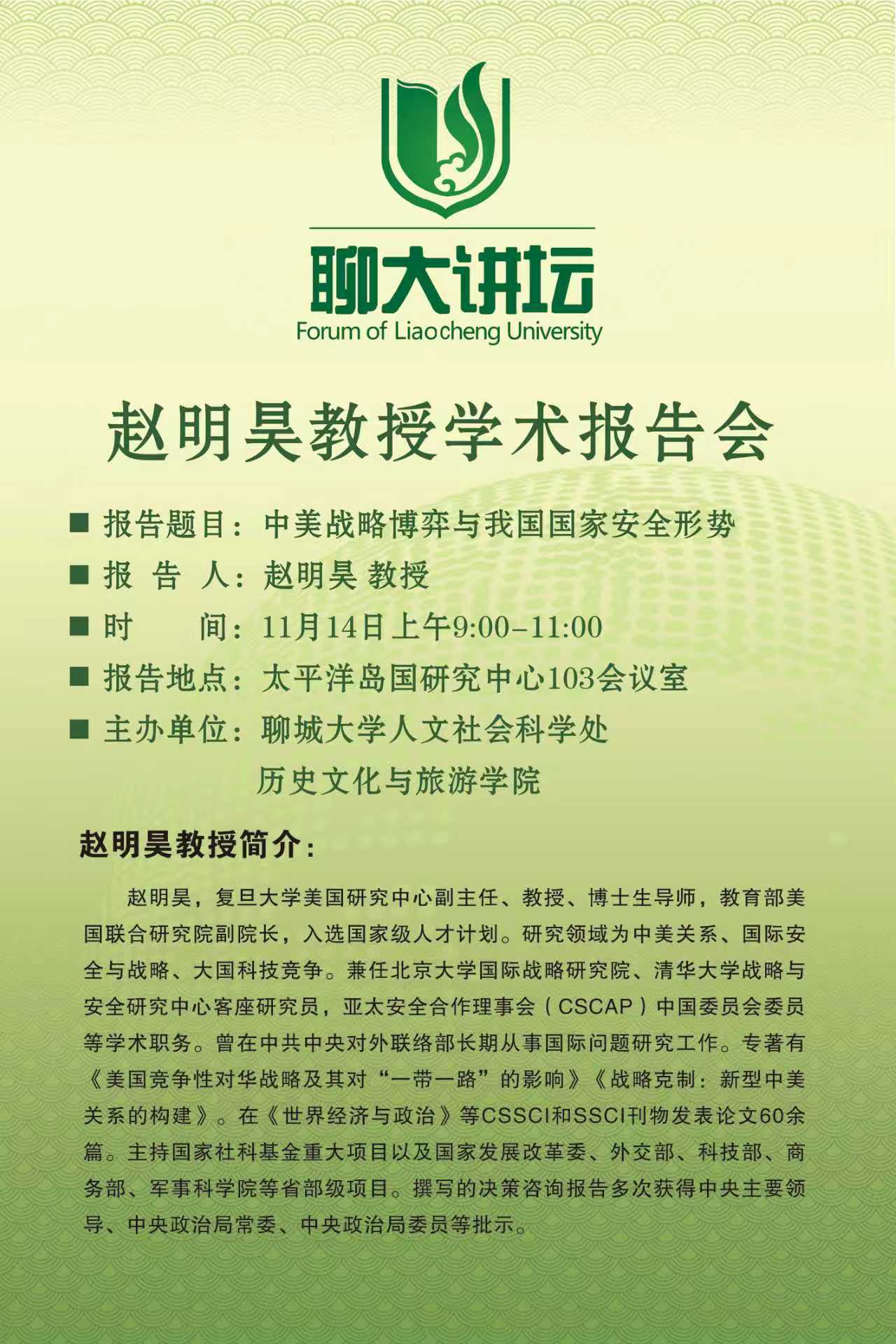 聊大讲坛:赵明昊教授学术报告会