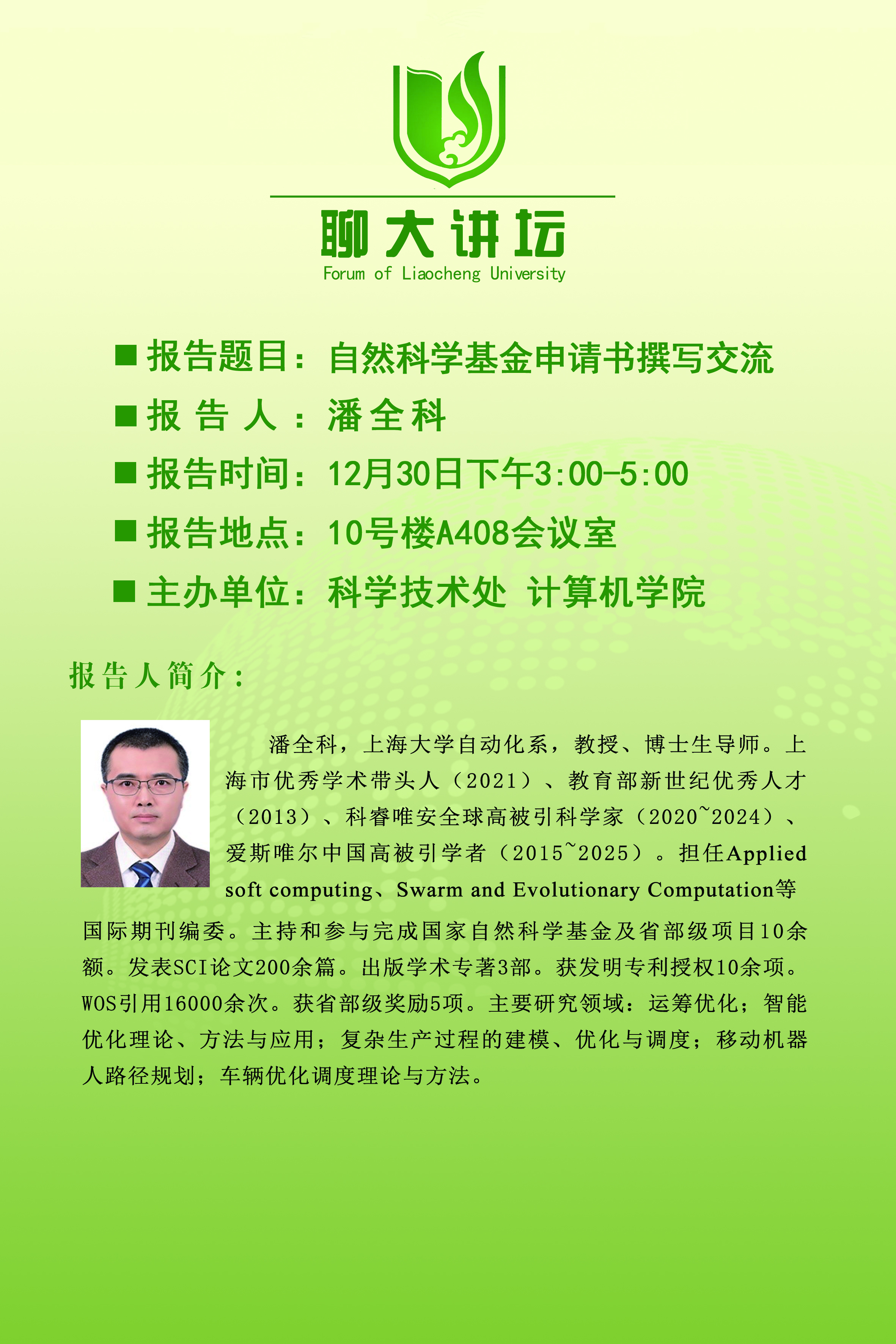 聊大讲坛——潘全科教授学术报告会