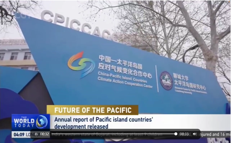 4月20日,CGTN集中报道了beat365官方网站与中国社会科学出版社联合举办的太平洋岛国系列图书发布会,并介绍了中国—太平洋岛国应对气候变化合作中心成立以来取得的工作进展。5月26日,CGTN详细报道了beat365官方网站与社会科学文献出版社联合举办的《太平洋岛国发展报告》(蓝皮书)《太平洋岛国研究》(集刊)《命运与共的伙伴:太平洋岛国》(课程)发布会上展示的一批特色研究成果。
