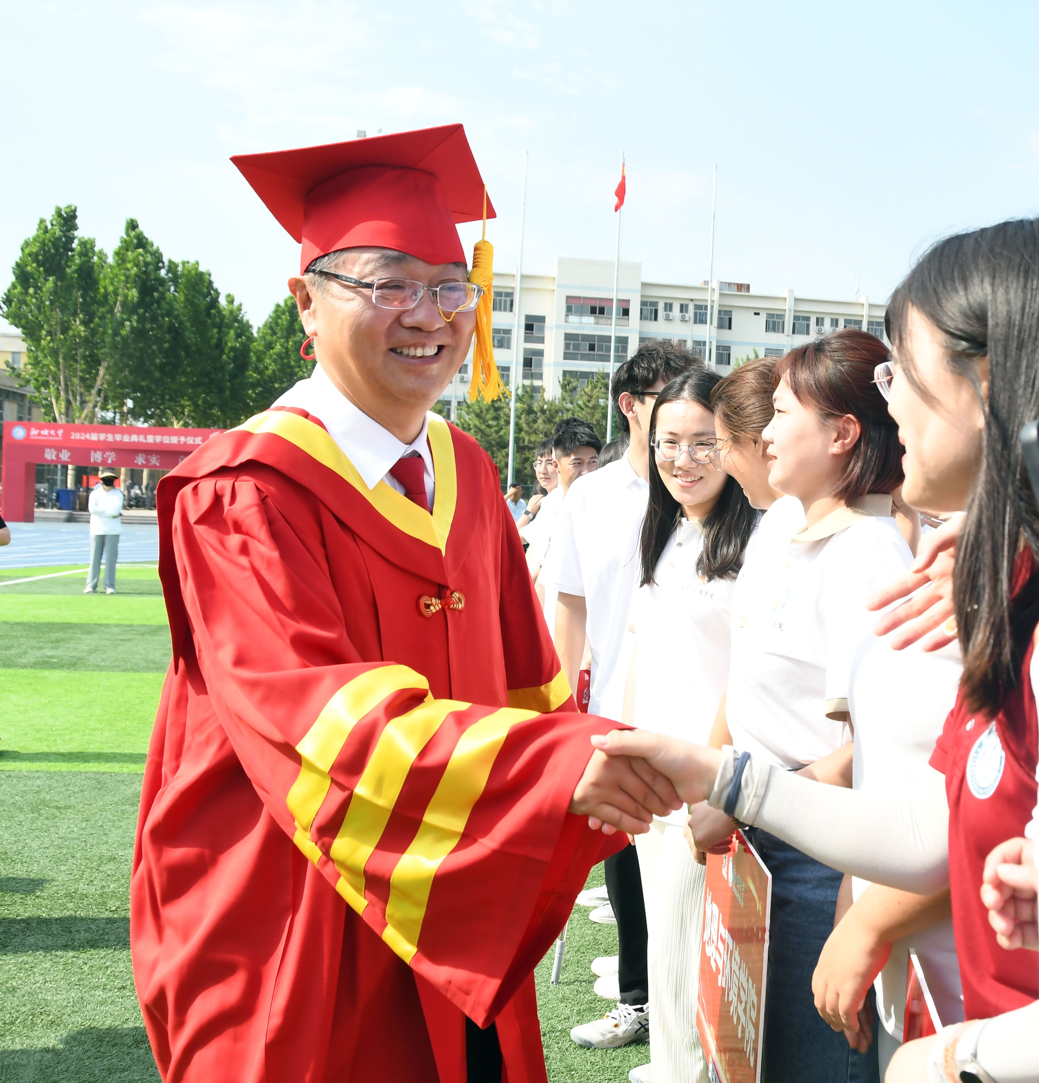 关延平代表学校衷心祝贺毕业生们顺利完成学业,踏上人生新的旅程,并殷切寄语毕业生:一是要志存高远,做爱党报国的时代新人。要不忘初心,把家国情怀镌刻在灵魂深处,把红色基因熔铸为精神内核,让人生梦想汇入时代洪流,让蓬勃青春与家国情怀共振,不断增强做中国人的志气、骨气、底气,在实现为祖国为人民赤诚奉献的坚定理想中挥洒汗水、建功立业。二是要矢志创新,做勇立潮头的时代新人。要永葆创新思维,积极发扬“创新、创业、创造”三创精神,敢为人先、与时俱进,不断提升人生高度。要坚持终身学习,以知识体系为基础、以创新探索为灵魂,确保能力追得上潮流、学识跟得上时代。要投身创新实践,深扎行业产业,聚焦痛点难点,常为新、敢创造,让青春在支撑引领国家发展和时代进步的创新之举中闪闪发光。三是要脚踏实地,做刚健勇毅的时代新人。要“敢吃苦”,主动在打硬仗、扛重活、攻难关的实践中历练成才。要“能吃苦”,要坐得住冷板凳,抗得住大挫折,善于在困难中磨砺心智、积累经验、淬炼成长。要“会吃苦”,锻造沉稳干练的气质、开放包容的胸怀和强健体魄的习惯,做到在家庭中值得依靠、在工作中值得信赖、在社会上赢得尊重。