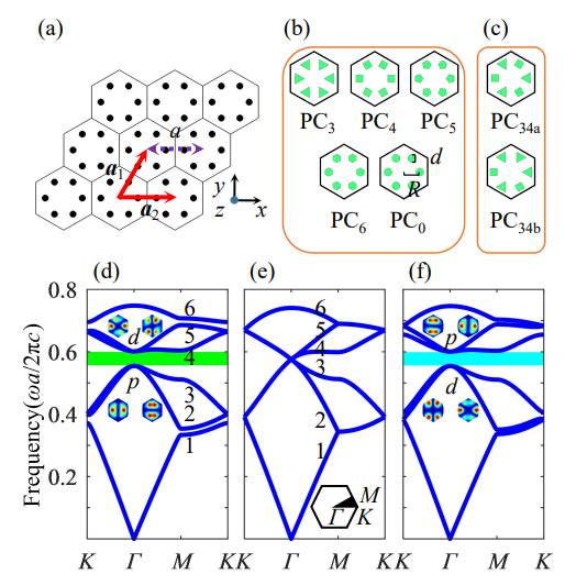 图1 C6对称和类C6对称光子晶体结构及其能带结构