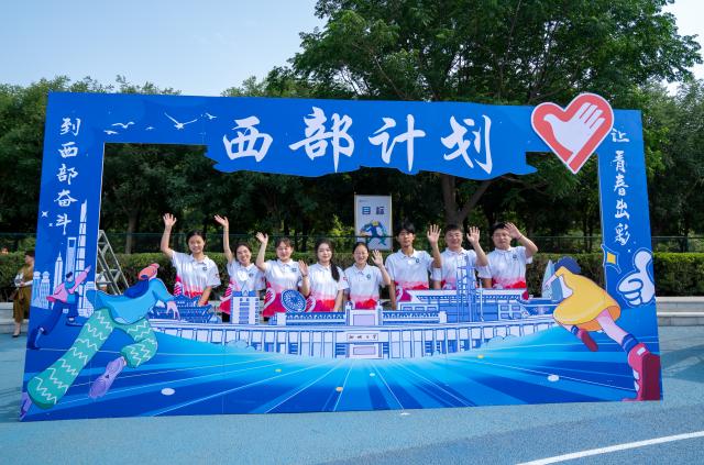 校党委领导班子全体成员为西部计划志愿者颁发荣誉证书,法学院毕业生张滢滢代表全体志愿者作了表态发言,全体西部计划志愿者庄严宣誓、唱响《到西部去》。