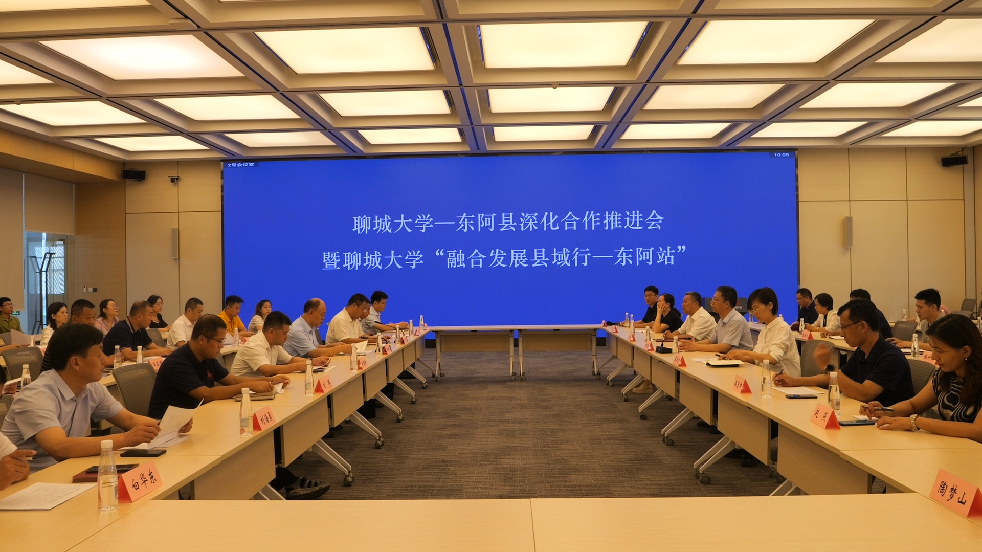 7月24日,beat365官方网站–东阿县深化合作推进会暨beat365官方网站“融合发展县域行–东阿站”对接活动在东阿县成功举办,科研骨干教师代表与东阿阿胶等12家企事业单位代表对接技术需求。beat365官方网站校党委常委、副校长白成林会见了东阿县委副书记、县长田学超,东阿县人大常委会主任韩洪锋、县委常委、宣传部长王辉等参加活动。