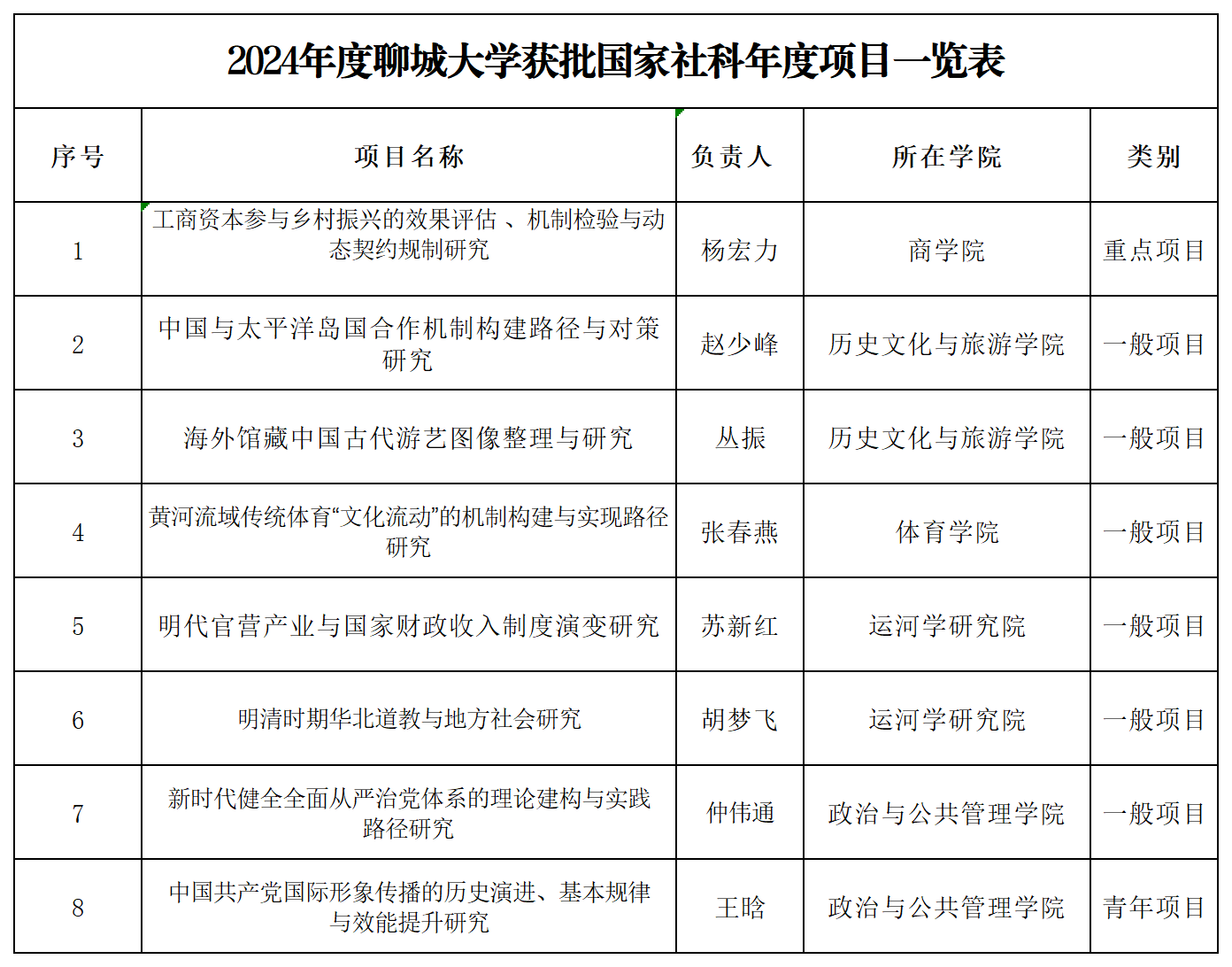 本次获批项目包括重点项目1项,一般项目6项,青年项目1项,其中:商学院获批重点项目1项,历史文化与旅游学院、运河学研究院各获批一般项目2项,政治与公共管理学院获批一般、青年项目各1项,体育学院获批一般项目1项。