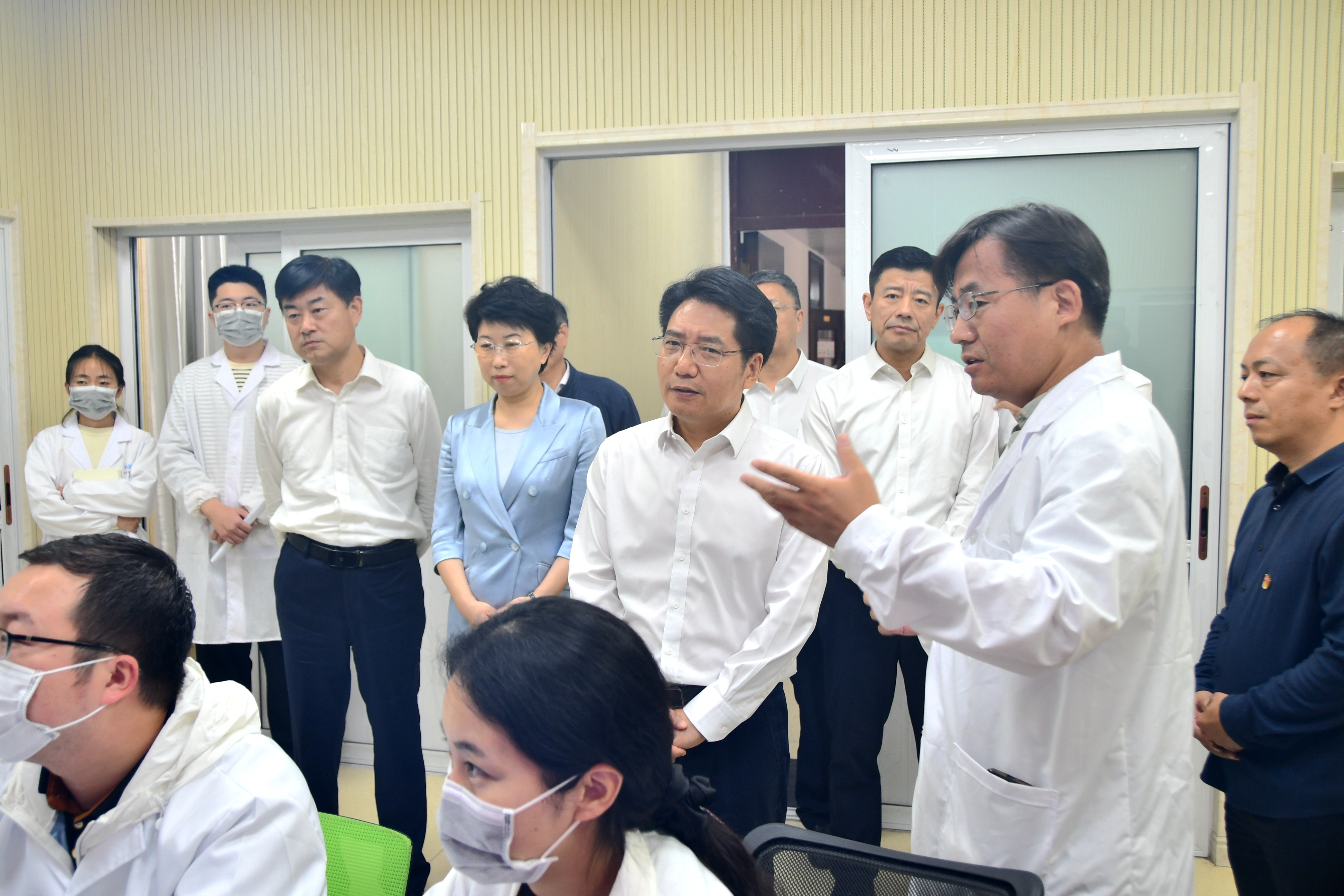 在化学化工学院实验室,邓云锋与科研人员深入交流。他表示,建设科技强国,高校科技战线重任在肩、使命光荣,希望广大教师抱定科技报国初心,勇担科技强国使命,自觉把学术追求融入强国建设事业,心无旁骛、潜心钻研,不断取得科技攻关新突破。