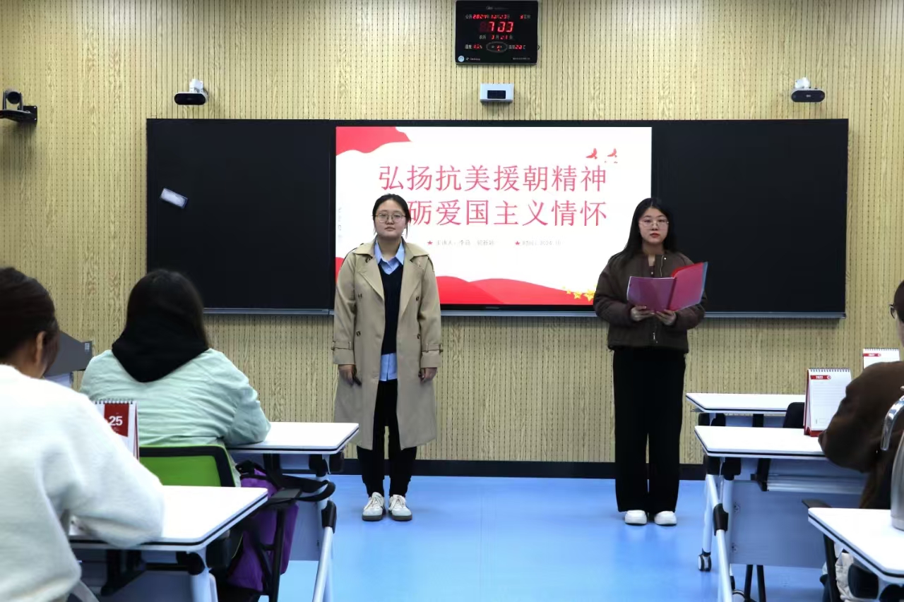 10月23日,马克思主义学院开展第二十一期思政年历微思政课交互体验活动——抗美援朝纪念日,习近平新时代中国特色社会主义思想青年学习会骨干成员郭新颖、李薇担任主讲人。