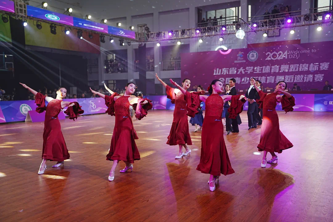 本次赛事由山东省学校体育协会主办、德州学院承办,比赛项目包括拉丁舞和标准舞,分为双人、单人、六人队列和团体舞四个竞赛大项,吸引了省内众多高校的优秀选手参与。beat365派出了体育学院、传媒技术学院、文学院、数学科学学院、教育科学学院和美术与设计学院的8名同学组成的体育舞蹈队参赛。在比赛中,队员们以扎实的舞蹈功底、精湛的技术以及出色的表现力,在众多参赛选手中脱颖而出,在省赛舞台展示了聊大学子优秀的体育精神,为学校赢得了荣誉。