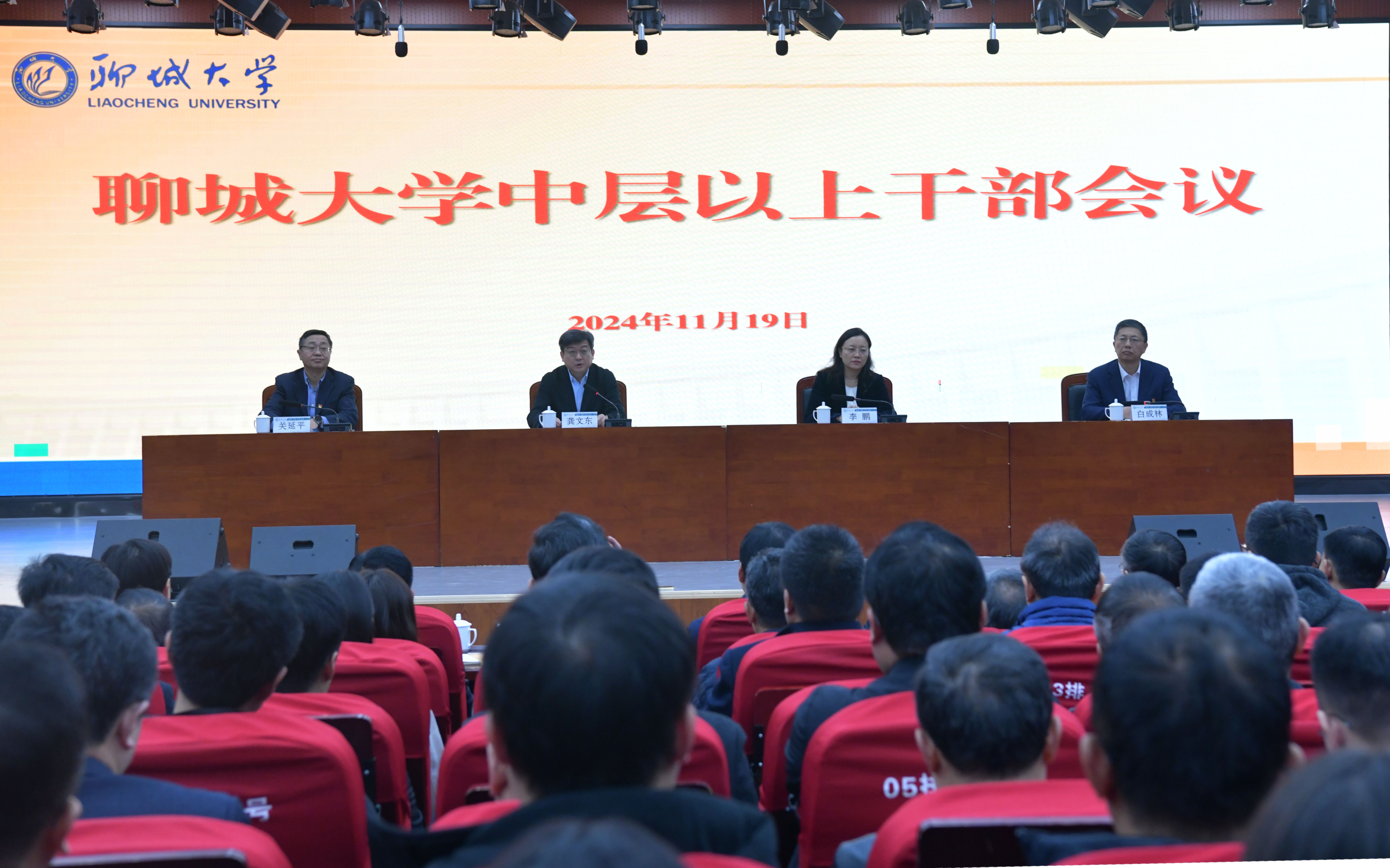 白成林表示,完全拥护、坚决服从省委决定,衷心感谢组织的培养与信任,感谢全校师生员工的信赖和支持。他指出,站在聊大筚路蓝缕办学半世纪、昂首阔步迈向新征程的历史节点上,聊大高质量发展的接力棒已经传到我们这一代人的手中。面对新岗位、新使命、新挑战,将以习近平新时代中国特色社会主义思想为指导,牢记组织重托和师生员工期待,坚决做到旗帜鲜明讲政治,始终坚守“忠诚之心”;坚决做到一往无前勇担当,始终坚守“实干之心”;坚决做到以师生为本谋发展,始终坚守“为民之心”;坚决做到廉洁自律作表率,始终坚守“敬畏之心”。在以关延平同志为班长的领导班子带领下,竭尽所能把学校建设好、发展好,与全校师生一起,共同开创高水平应用型大学建设新局面,以更加优异的成绩回报省委、省政府的重托,回应师生员工的期盼。