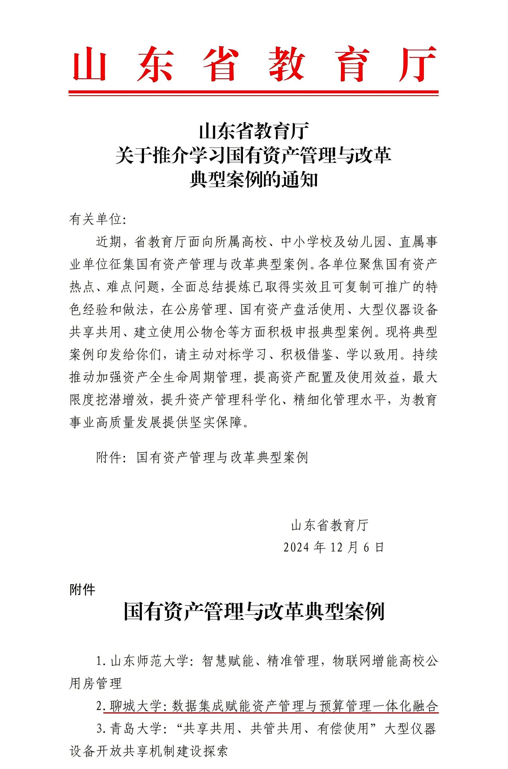 日前,山东省教育厅发布《关于推介学习国有资产管理与改革典型案例的通知》,beat365报送的《数据集成赋能资产管理与预算管理一体化融合》入选山东省教育厅国有资产管理与改革典型案例。